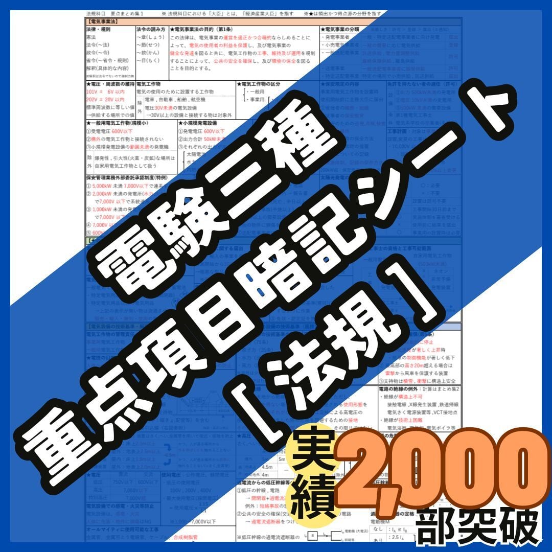 【R8年度試験対応】電験三種 法規科目 A4フルカラー暗記シート+練習用紙付